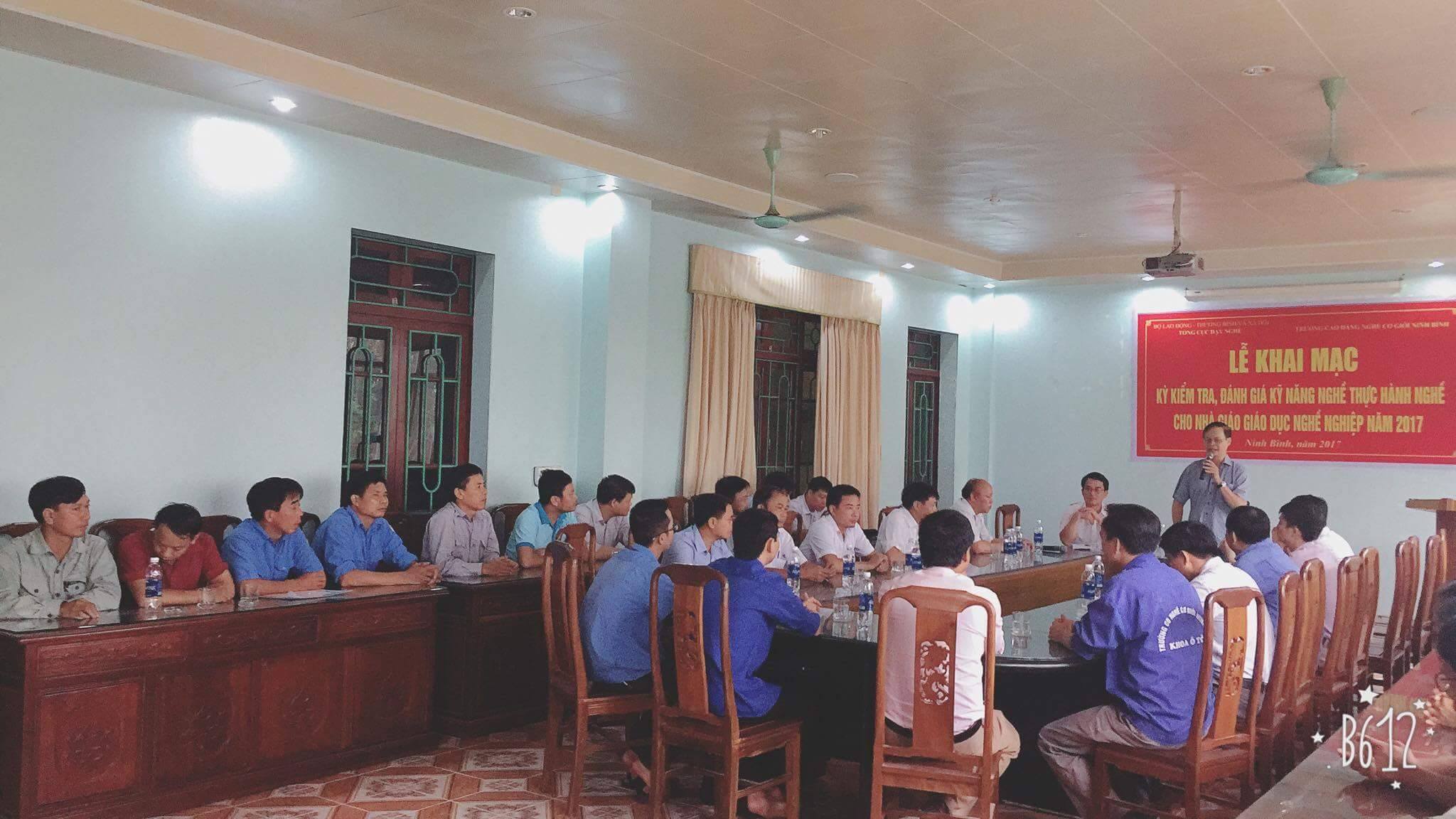Sáng ngày 8/7/2017 tại Hội trường khoa Máy thi công Trường Cao đẳng nghề Cơ giới Ninh Bình đã tổ chức Lễ Khai mạc kỳ kiểm tra, đánh giá kỹ năng nghề- thực hành nghề cho Nhà giáo Giáo dục nghề nghiệp năm 2017 cho 30 học viên- giáo viên