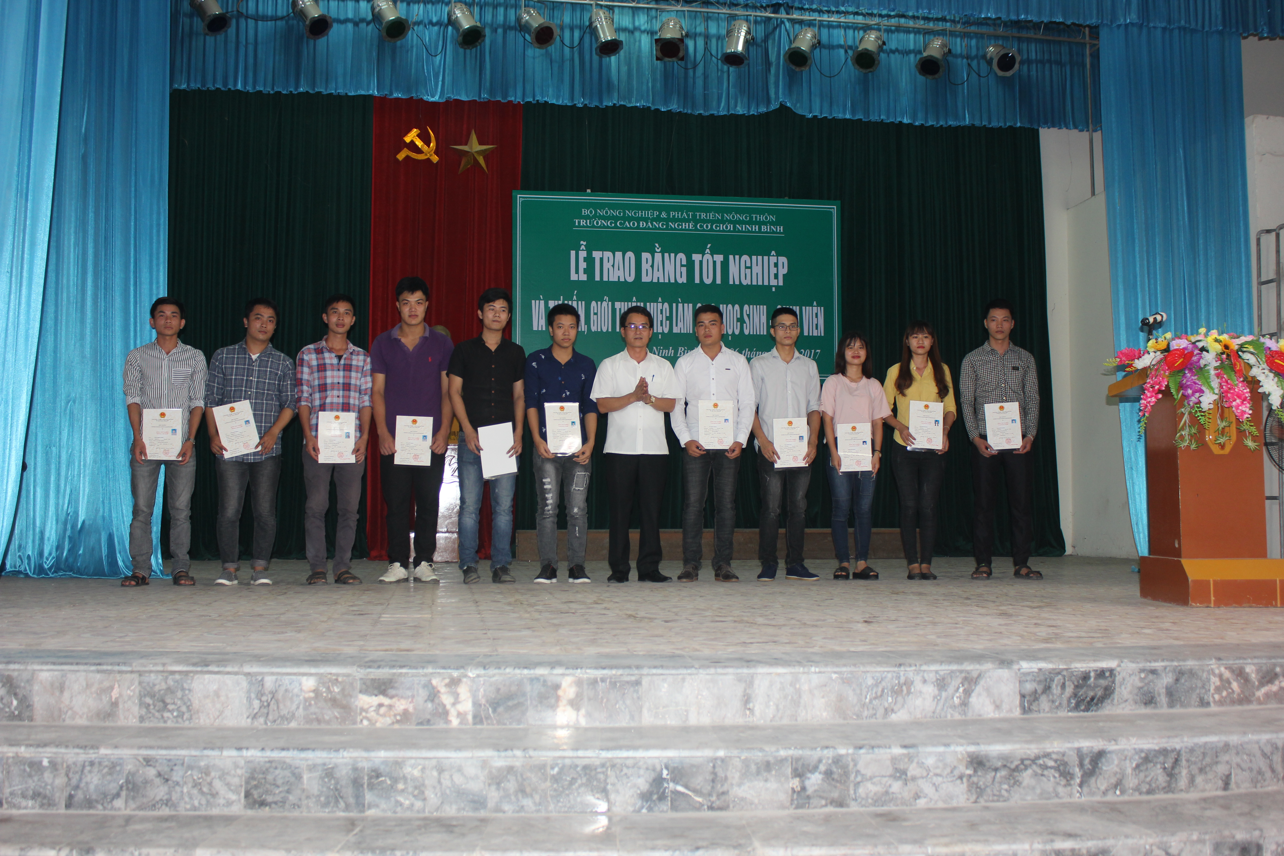 Sáng ngày 6/7/2017, tại Hội trường Đa năng, Trường Cao đẳng nghề Cơ giới Ninh Bình long trọng tổ chức Lễ trao bằng Tốt nghiệp và Tư vấn Giới thiệu việc làm cho 354 em HSSV các hệ Cao đẳng nghề, Trung cấp nghề và Sơ cấp nghề các khóa