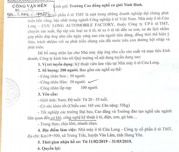 CÔNG TY CỔ PHẦN NHỰA Y TẾ VIỆT NAM THÔNG BÁO TUYỂN DỤNG NHÂN SỰ DÀNH CHO SINH VIÊN TRƯỜNG CAO ĐẲNG CƠ GIỚI NINH BÌNH