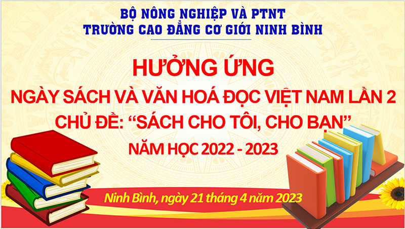 TRƯỜNG CAO ĐẲNG CƠ GIỚI NINH BÌNH TỔ CHỨC NGÀY SÁCH VÀ VĂN HÓA ĐỌC VIỆT NAM LẦN THỨ 2 – NĂM 2023 VỚI CHỦ ĐỀ “SÁCH CHO TÔI, CHO BẠN”.
