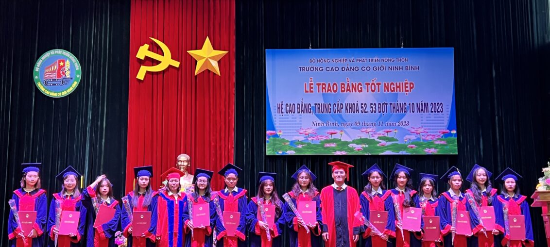 Chiều ngày 09/11/2023, tại Hội trường Trường Cao đẳng Cơ giới Ninh Bình đã long trọng tổ chức trao bằng tốt nghiệp hệ Cao đẳng, Trung cấp khóa 52, 53 đợt tháng 10 năm 2023.