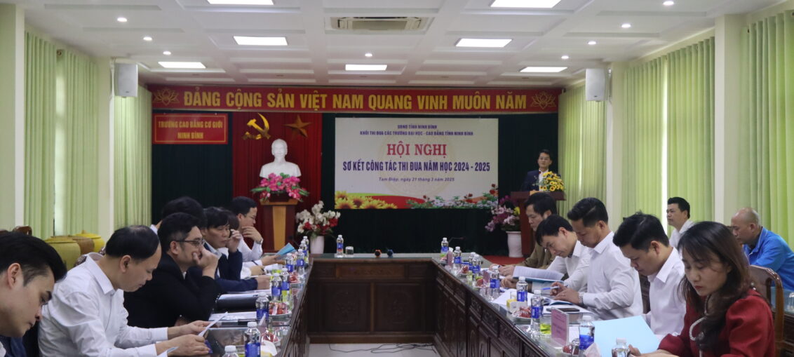 Thực hiện Chương trình, Kế hoạch công tác thi đua năm học 2024-2025. Ngày 21 tháng 3 năm 2025 tại Trường Cao đẳng Cơ giới Ninh Bình đã diễn ra Hội nghị Sơ kết Công tác thi đua năm học 2024-2025 của Khối thi đua các trường Đại học –