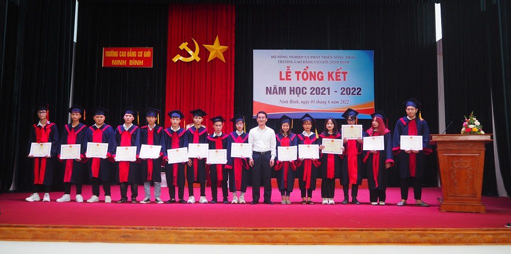 Sáng ngày 01/06/2022, Trường Cao đẳng Cơ giới Ninh Bình tổ chức “Lễ tổng kết năm học 2021-2022” nhằm tổng kết, đánh giá kết quả học tập của các em học sinh hệ GDTX cấp THPT kết hợp học hệ Trung cấp, tuyên dương, khen thưởng các cấp thể và
