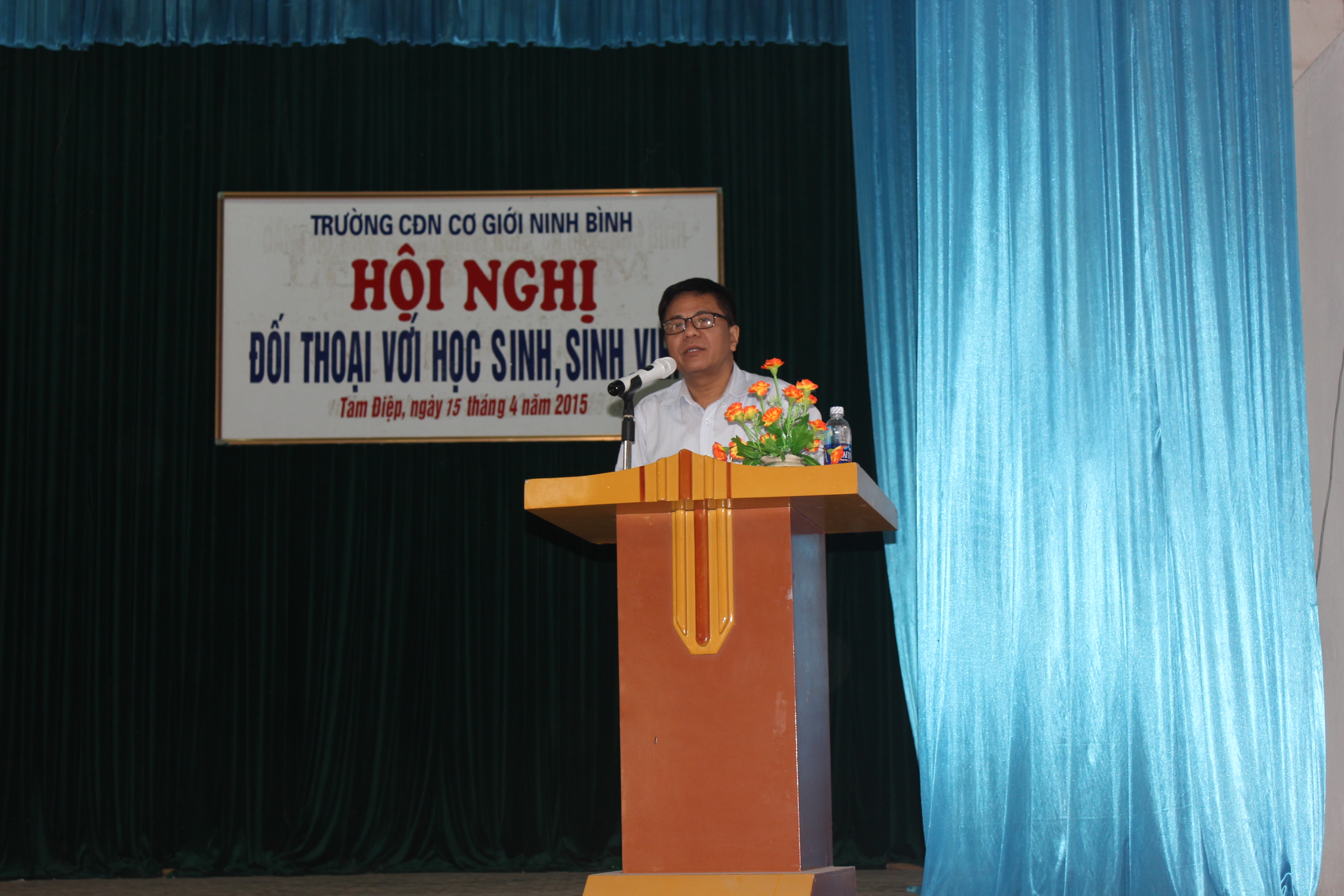 Thực hiện quy chế dân chủ trong Nhà trường, với mục đích tạo kênh thông tin, tạo diễn đàn trao đổi dân chủ trực tiếp, chiều ngày 15/4/2015, tại Hội trường Đa năng, trường Cao đẳng nghề Cơ giới Ninh Bình đã diễn ra hội nghị đối thoại giữa lãnh