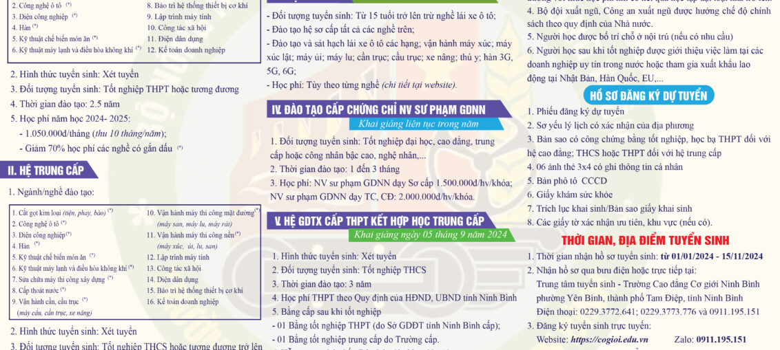 Trường Cao đẳng Cơ giới Ninh Bình – Thông Tin Tuyển Sinh Năm 2024