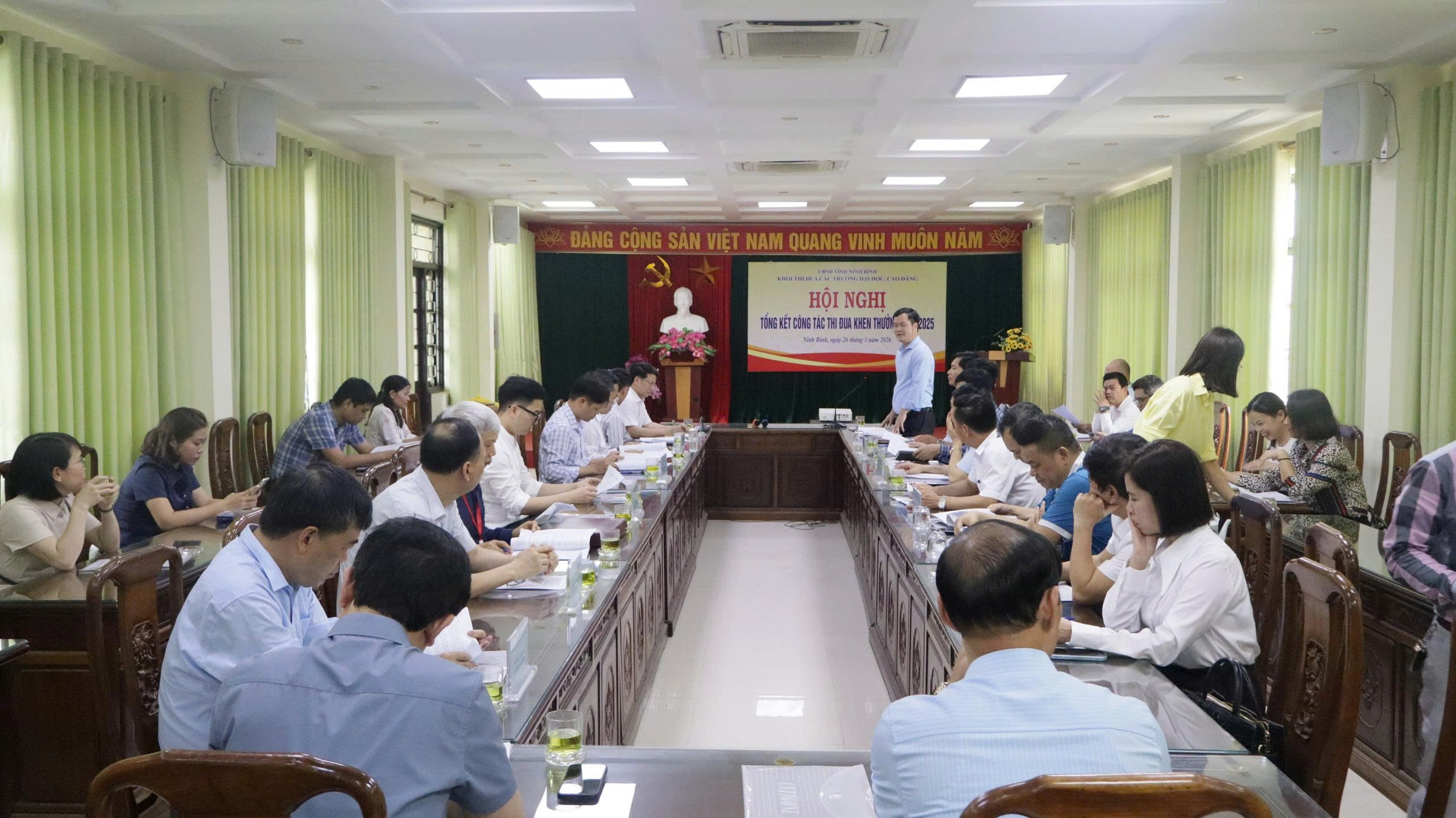 Sau thời gian làm việc nghiêm túc, hiệu quả, với tinh thần trách nhiệm cao, Hội nghị Tổng kết công tác thi đua khối các trường đại học, cao đẳng tỉnh Ninh Bình năm 2025 đã hoàn thành các nội dung đề ra và thống nhất cao với phương hướng, nhiệm vụ chủ yếu năm 2026 để thực hiện tốt chương trình, kế hoạch công tác của Khối thi đua.