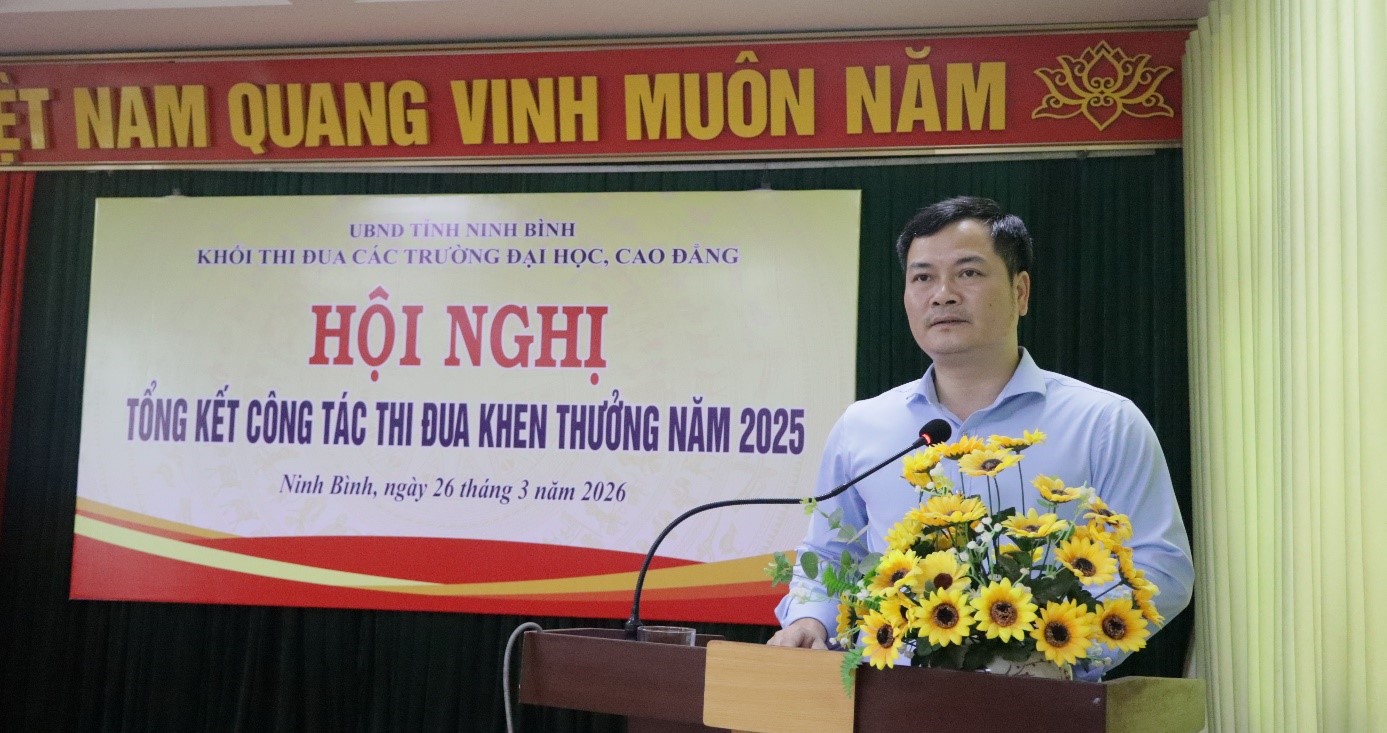 Ngày 26/3/2026, tại Trường Cao đẳng Cơ điện Nông nghiệp và Môi trường tổ chức tổng kết công tác thi đua khối các trường đại học, cao đẳng tỉnh Ninh Bình năm 2025.